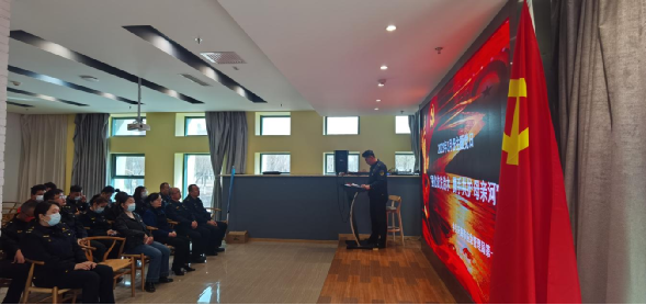 活动一开始,第一党支部全体党员同志齐声奏唱国歌,重温入党誓词,回忆入党初心。随后,第一党支部书记领学党章(部分)以及《中华人民共和国水法》《中华人民共和国黄河保护法》《乌海市委 市政府关于开展深度节水控水行动 建设节水型社会的实施意见》(乌党发〔2021〕27号)等相关政策法规,学习节约水资源、珍惜水资源的知识和理念。